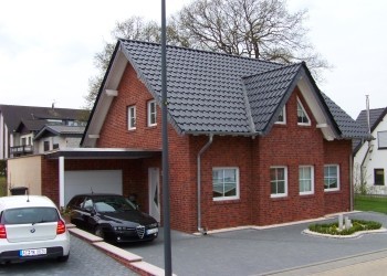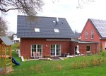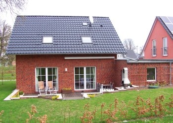 Klinkerberblendung, Friesengiebel, Luft-Wasser-Wärmepumpe, einzeln regelbare Fußbodenheizung im Erd- und Obergeschoss, massive Bauweise, Stahlbetondecke, Bodenplatte mit Frostschürze, hochwertige Mehrkammer-Kuststofffenster, Kaminsystem.